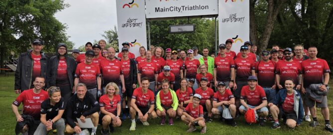 Rot-schwarze Triathlonanzüge und T-Shirts waren beim diesjährigen Hofheim Triathlon überall ...